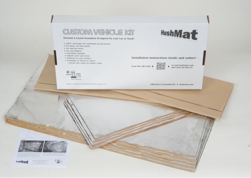 Comfort and style are earmarks of your vehicle. HushMats sound deadening and thermal insulation enhances the experience with the easiest to install sound deadening material. Your vehicle is fun to drive, but the engine gets hot. Your engine, headers, manifold and exhaust generate tremendous heat that transfers to the metal firewall and floor and this heats up your vehicle interior. This also forces your AC system to work harder to reduce and maintain comfortable temperatures inside your vehicle. HushMat proprietary USA manufactured chemistry makes the automotive heat shield dissipate this heat, insulating your interior, and improving the load on your HVAC system which makes your vehicle significantly cooler in the summer and warmer in the winter. HushMat is proven in an independent study to lower this temperature by over 40 percent. When you drive on the highway at approximately 65 miles per hour the interior of your vehicle is approaching 80 to 90 decibels of noise. That is like placing a vacuum cleaner or garbage disposal running on your passenger seat. HushMat uses a specially designed sound deadening mat to REDUCE the noise level in your vehicle by up to 15 decibels. When you drive on the highway and then exit. At the end of the exit ramp the first thing you do is turn down your radio or music because it was too loud. The same is true when speaking on a cell phone or through blue tooth. Eliminate the road noise with HushMat and enjoy your conversation without yelling over the noise. HushMat sound deadening mat leads the automotive sound deadening industry in ease of installation. It is also the number 1 Rated in performance. Hushmat is packaged specifically for your vehicle to provide 100 percent insulation coverage, there are no holes in the material and no puzzle pieces to put together. Treat your firewall, doors, floor, tunnel, rear wheel wells, trunk floor and roof with this complete kit.