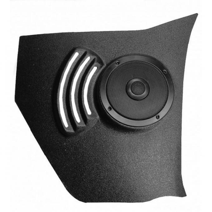 Kickpanels with speakers were developed by Custom Autosound in the 1980's to enhance the sound quality of your radio by adding custom speaker assemblies to classic cars and trucks. While our kickpanels enhance the interior appearance of your ride, they provide great sound and install with no modifications to your vehicle. We've designed them to custom fit perfectly with the door panels on your classic car or truck. We build our kickpanels with black ABS plastic and can be painted to match the interior of your vehicle. The most popular kickpanels come with built-in CAM 6 1/2" coaxial 2-way, 80 Watt speakers.